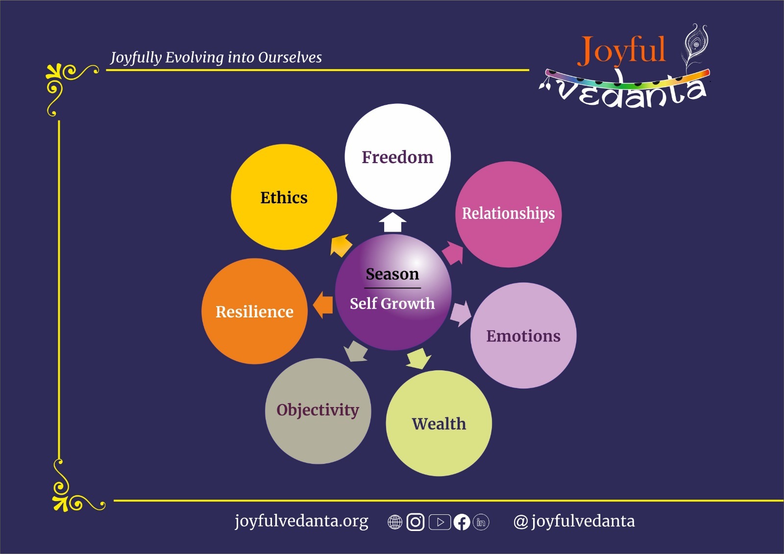 “Joyful Vedanta” is a Life Transforming Journey, through a process that is Exciting and Enthralling–just like an OTT Web Series!! It is organised into Seasons; each Season has multiple Episodes; each Episode is presented in a captivating manner.